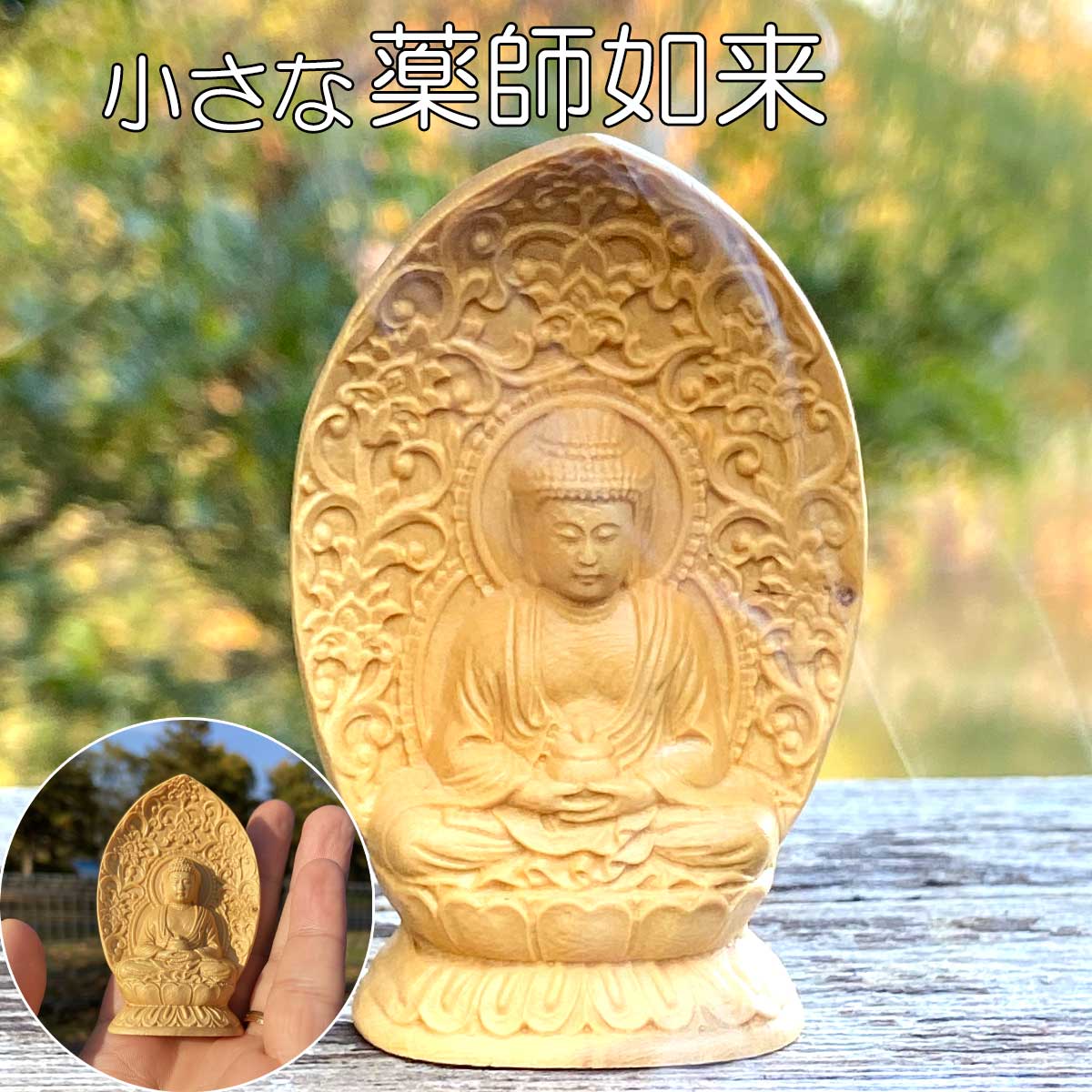 薬師如来 木彫り仏像|手のひらサイズ・ミニ仏像|現世利益・病気平癒の守護仏