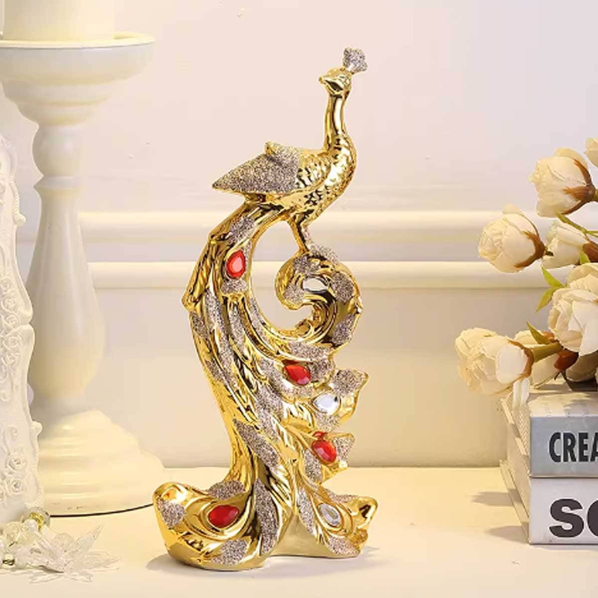 金彩の鳳凰 陶磁器オブジェ ガラス装飾|金属調塗装で仕上げた上品なインテリア置物 高さ25cm 玄関 リビング 書斎に映える鳳凰モチーフ