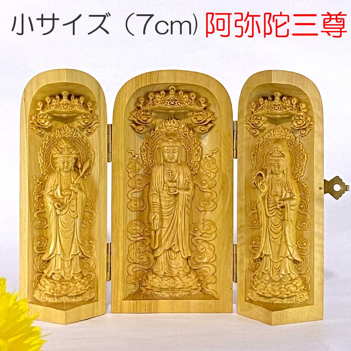 阿弥陀三尊 仏像|阿弥陀如来・観音菩薩・勢至菩薩|木製厨子入り・7cm|午年・戌年・亥年の守本尊