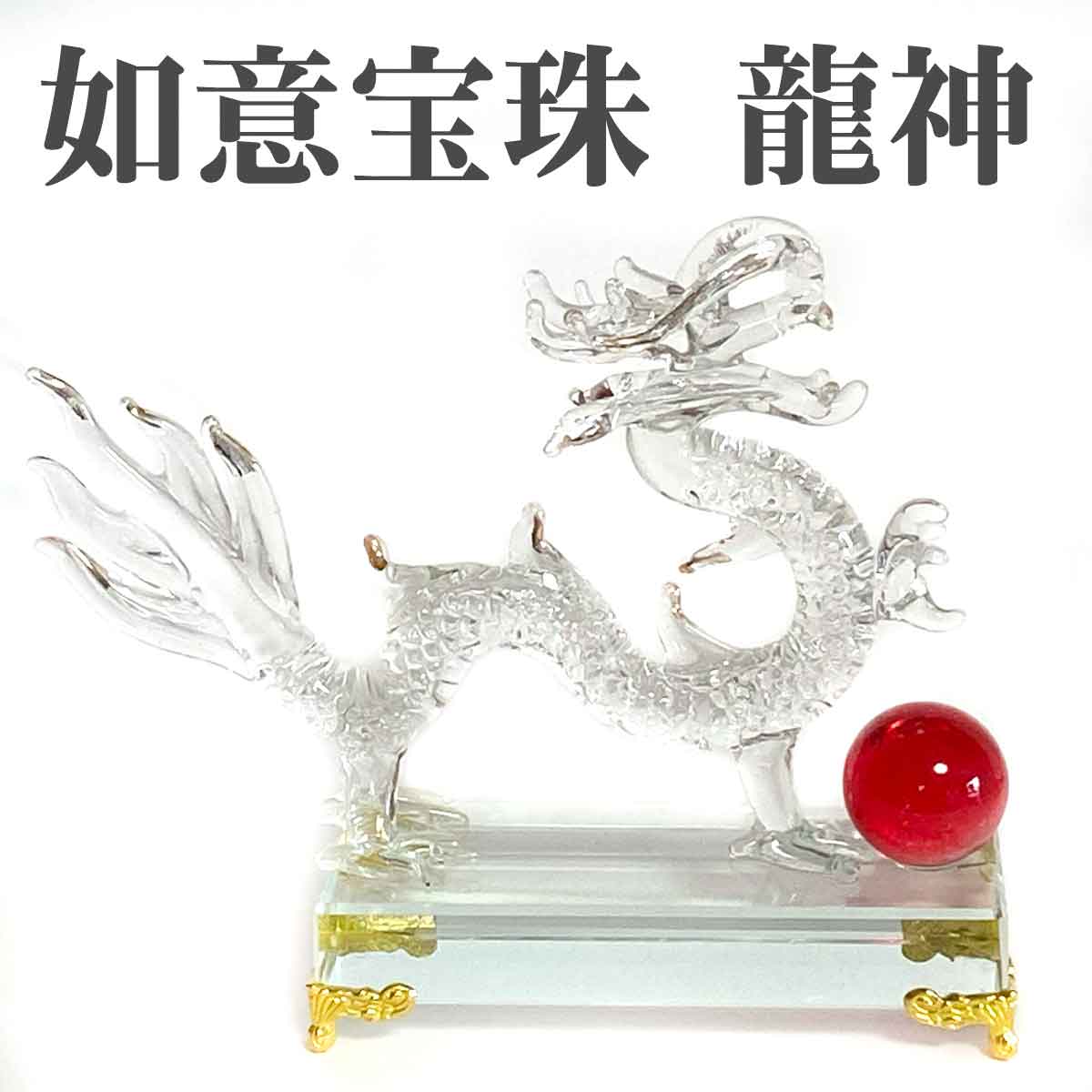 龍神 金龍 如意宝珠 風水置物|溶錬水晶製・4本爪の金龍が運気を招く開運アイテム