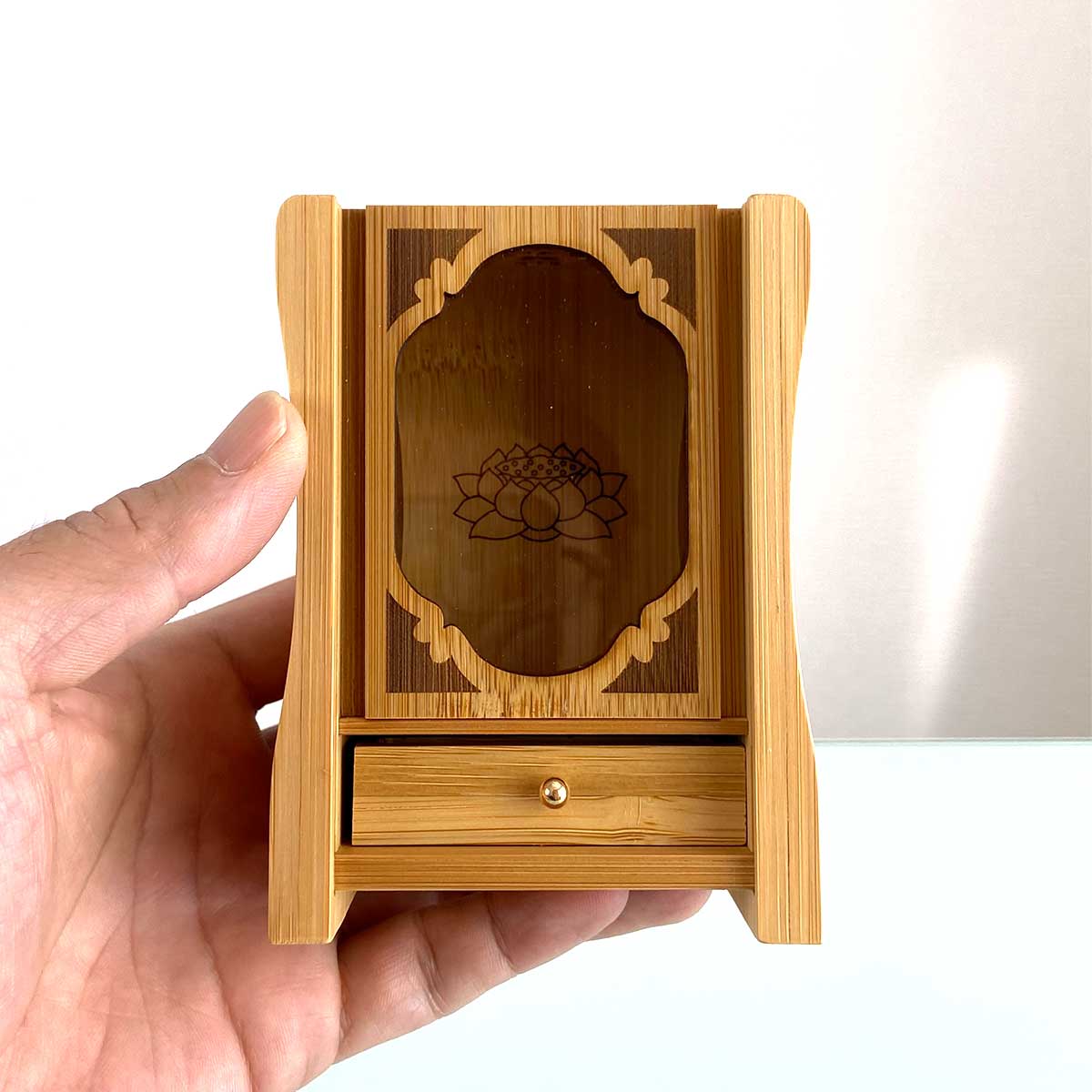 竹製ミニ仏像厨子は、当店の小さな仏像シリーズにぴったりフィットするよう設計された、コンパクトで機能的な仏像収納ケースです。