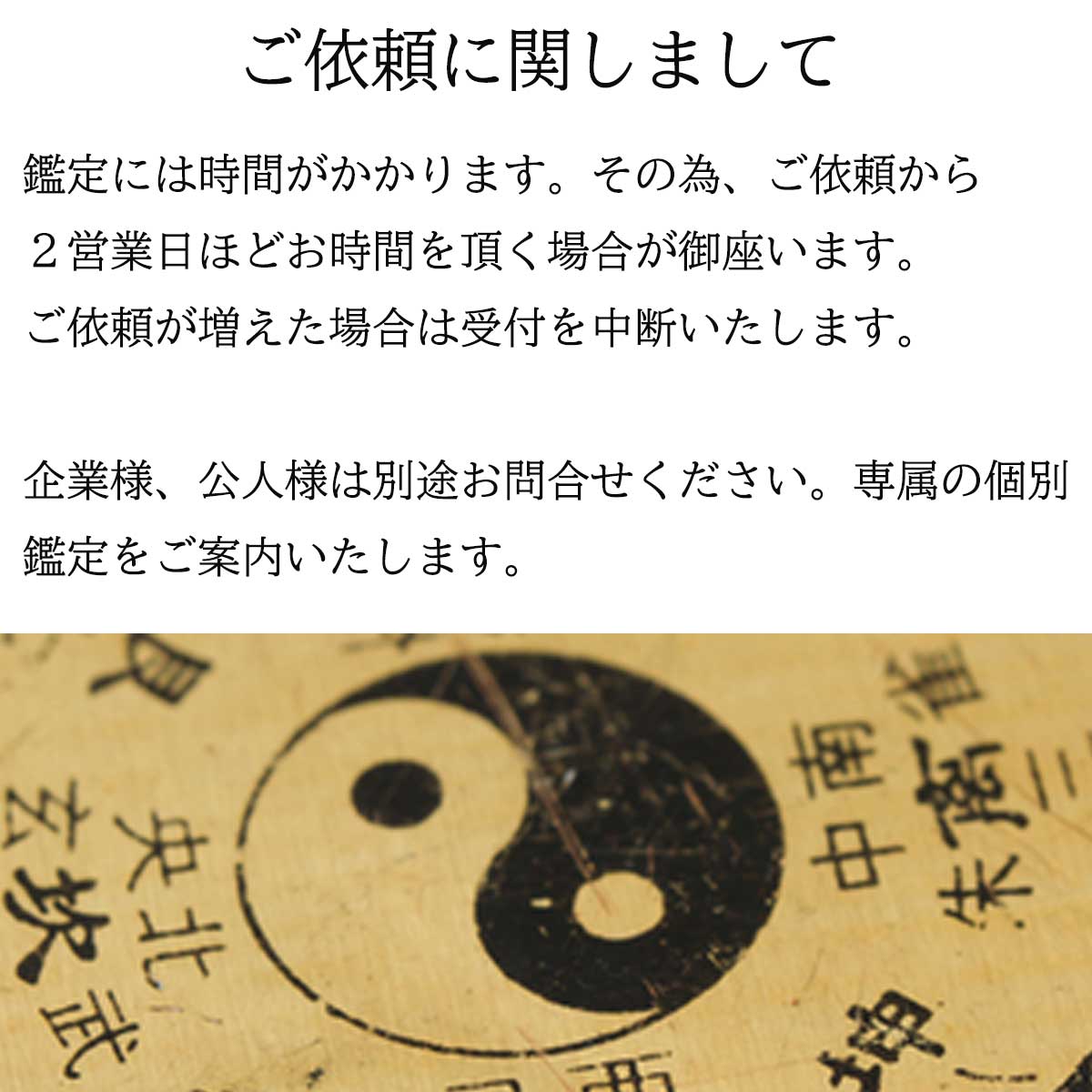 ご依頼後は、生年月日とご相談内容をもとに鑑定を行い、 2営業日前後で結果をメール送信いたします。 混雑時は受付を一時的に停止する場合がございます。